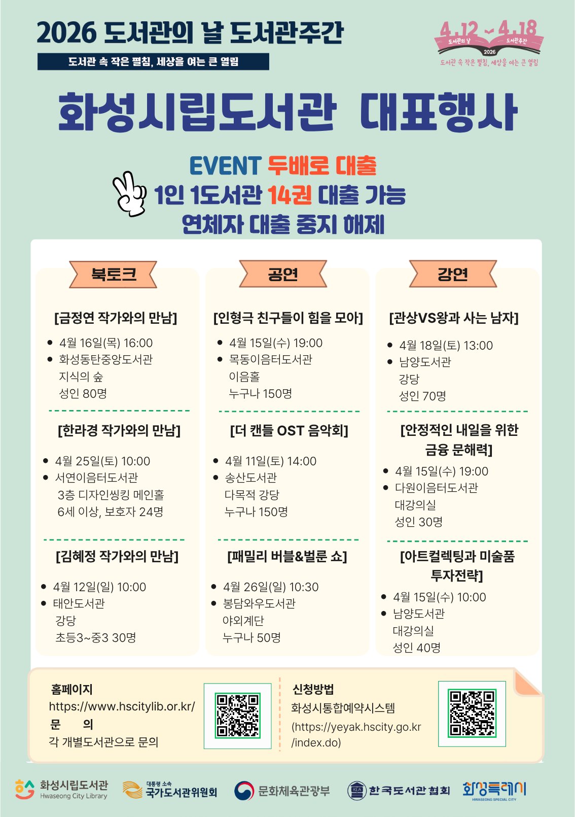 [PEDIEN] 화성특례시가 4월 12일 도서관의 날을 기념하며 12일부터 18일까지 도서관 주간을 운영한다.