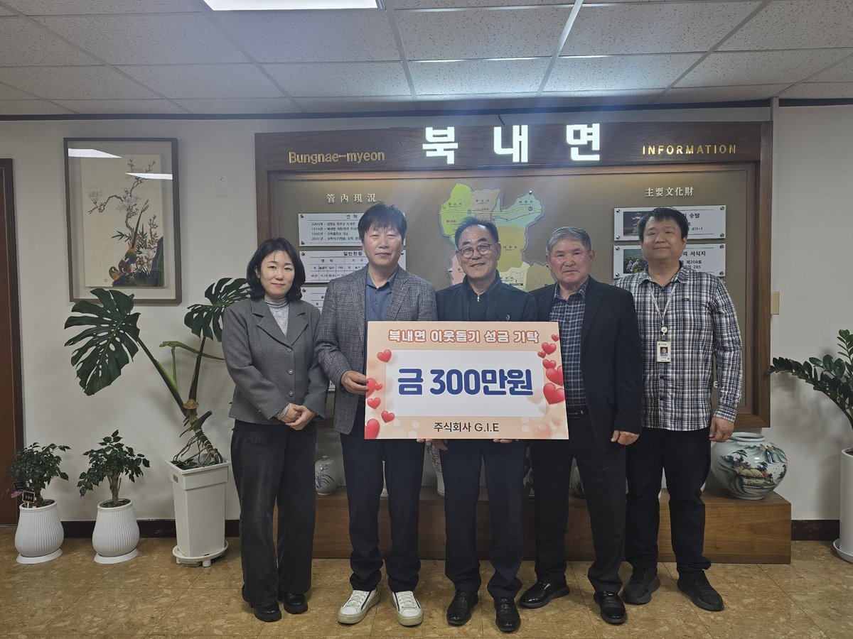이준기 북내면장은 홍 대표에게 깊은 감사를 표했다. 그는 “지역사회를 위한 따뜻한 나눔을 실천해주신 홍광표 대표님께 진심으로 감사드린다”며, “기탁해주신 성금은 꼭 필요한 분들에게 소중히 전달될 수 있도록 하겠다”고 약속했다.