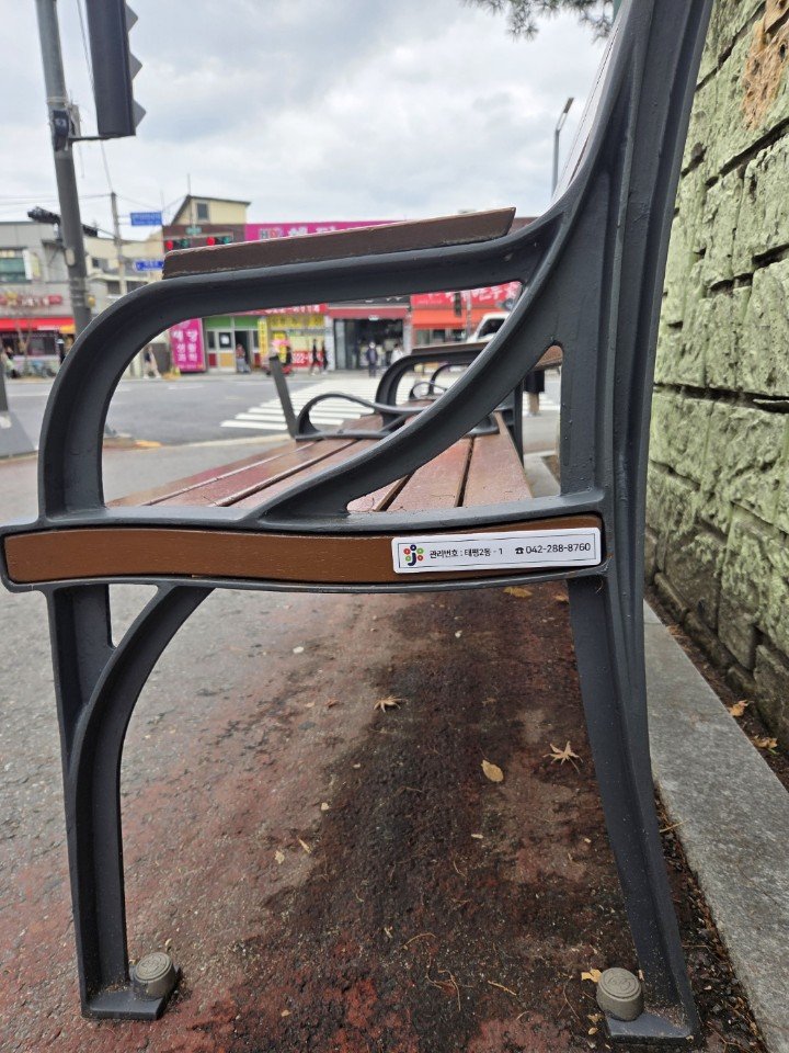 태평2동은 벤치마다 관리번호를 붙이고 관리 부서 연락처를 적어뒀다. 주민들이 벤치에 문제가 생기면 바로 신고할 수 있도록 체계를 마련했다.