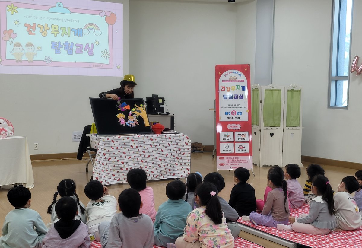 대면 프로그램인 ‘건강무지개 탐험교실’은 유아들이 직접 탐험대원이 되어 테마별 공간을 체험하고 건강생활 습관을 배우는 방식으로 운영된다.