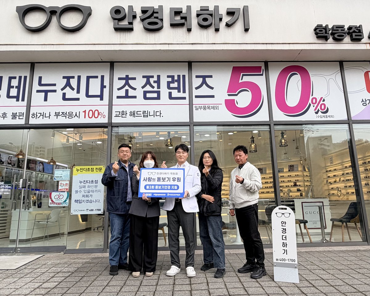 특히 안경더하기 학동점은 앞으로 매월 돌봄이웃 3가구에 순차적으로 안경을 지원할 계획이다.