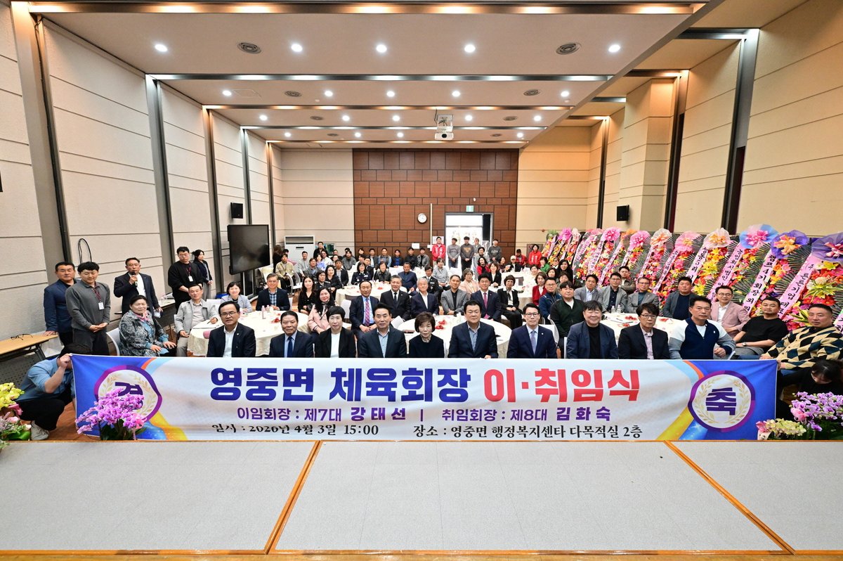지난 3일, 영중면 행정복지센터에서 체육회장 이·취임식이 성황리에 개최됐다. 제7대 강태선 회장의 이임과 제8대 김화숙 회장의 취임을 축하하는 자리였다.