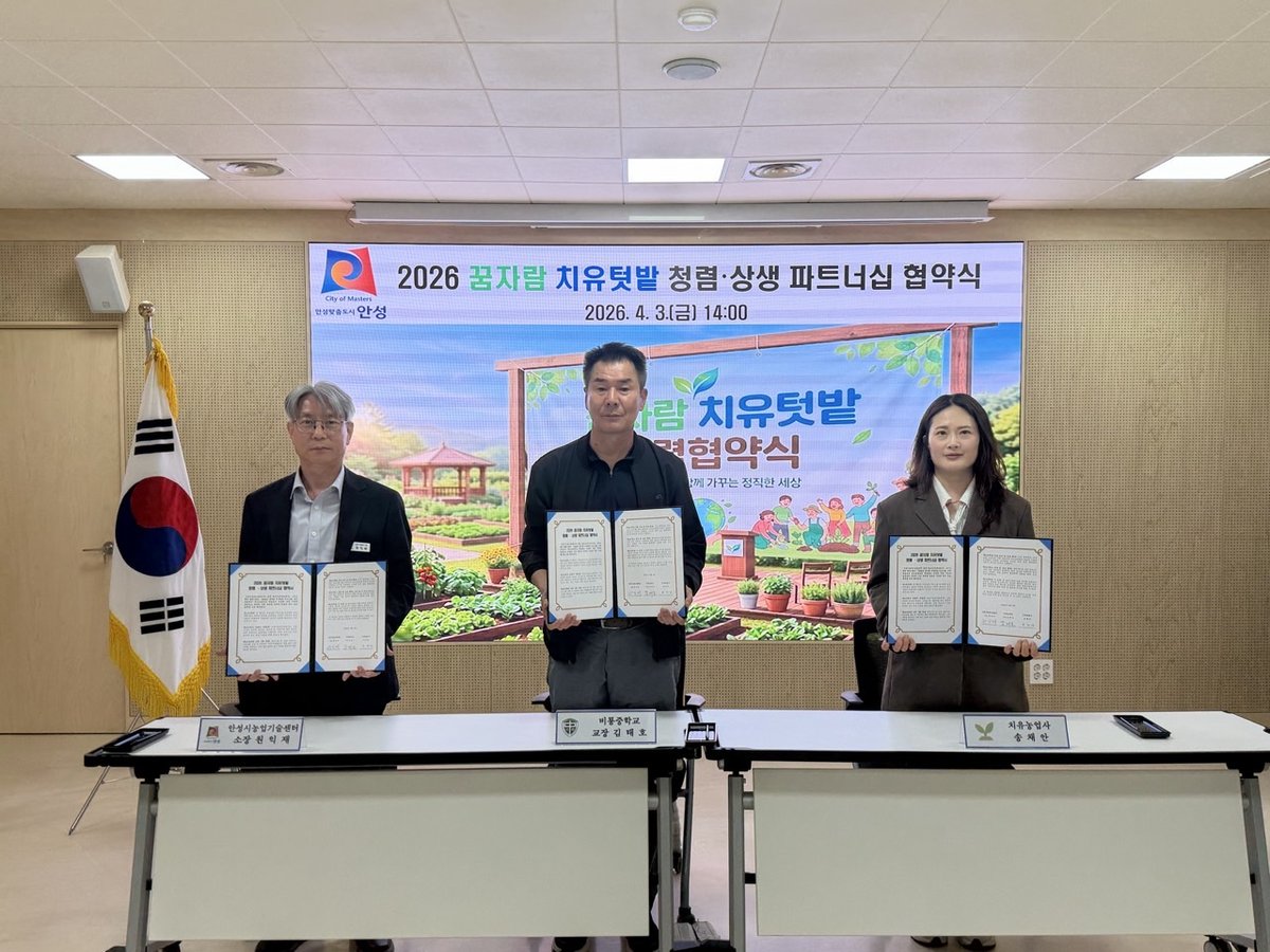 이를 위해 안성시농업기술센터는 비룡중학교, 치유농업사와 손잡고 청렴 상생 파트너십 협약을 체결, 투명하고 안전한 교육 환경을 조성하기로 했다.