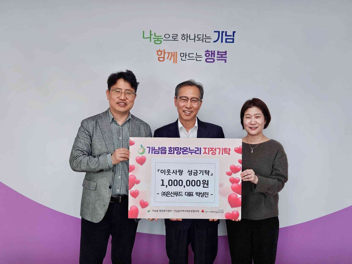 [PEDIEN] 여주시 가남읍 소재 은산푸드의 박상진 대표가 지난 6일, 가남읍 행정복지센터에 100만원의 이웃돕기 성금을 전달하며 4년째 나눔을 이어갔다.