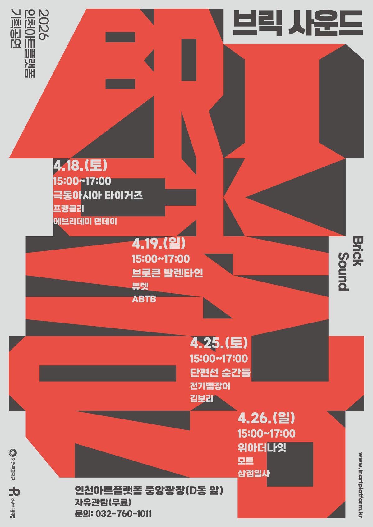[PEDIEN] 인천아트플랫폼이 봄을 맞아 야외 음악 공연 '브릭 사운드'를 개최한다. 4월 18일부터 26일까지 2주간, 총 4일 동안 인천아트플랫폼 중앙광장에서 펼쳐지는 음악 축제다.