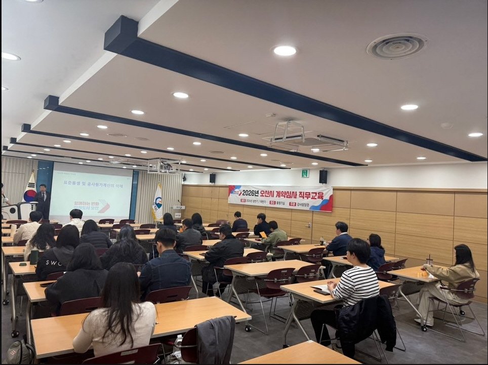 [PEDIEN] 오산시가 지난 7일 시청에서 본청, 사업소, 산하기관 발주 담당 공무원 52명을 대상으로 '2026년 상반기 계약심사 직무교육'을 진행했다.