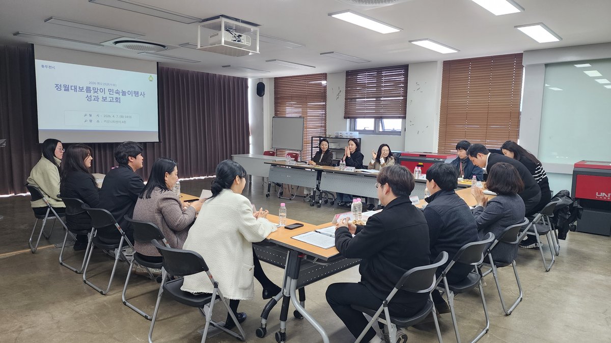[PEDIEN] 동두천시는 지난 7일 커뮤니티센터에서 '2026년 정월대보름 맞이 행사' 성과보고회를 열었다. 8개 동 행정팀장과 관계자 20여명이 참석하여 행사 전반에 대한 평가와 개선 방안을 논의했다.