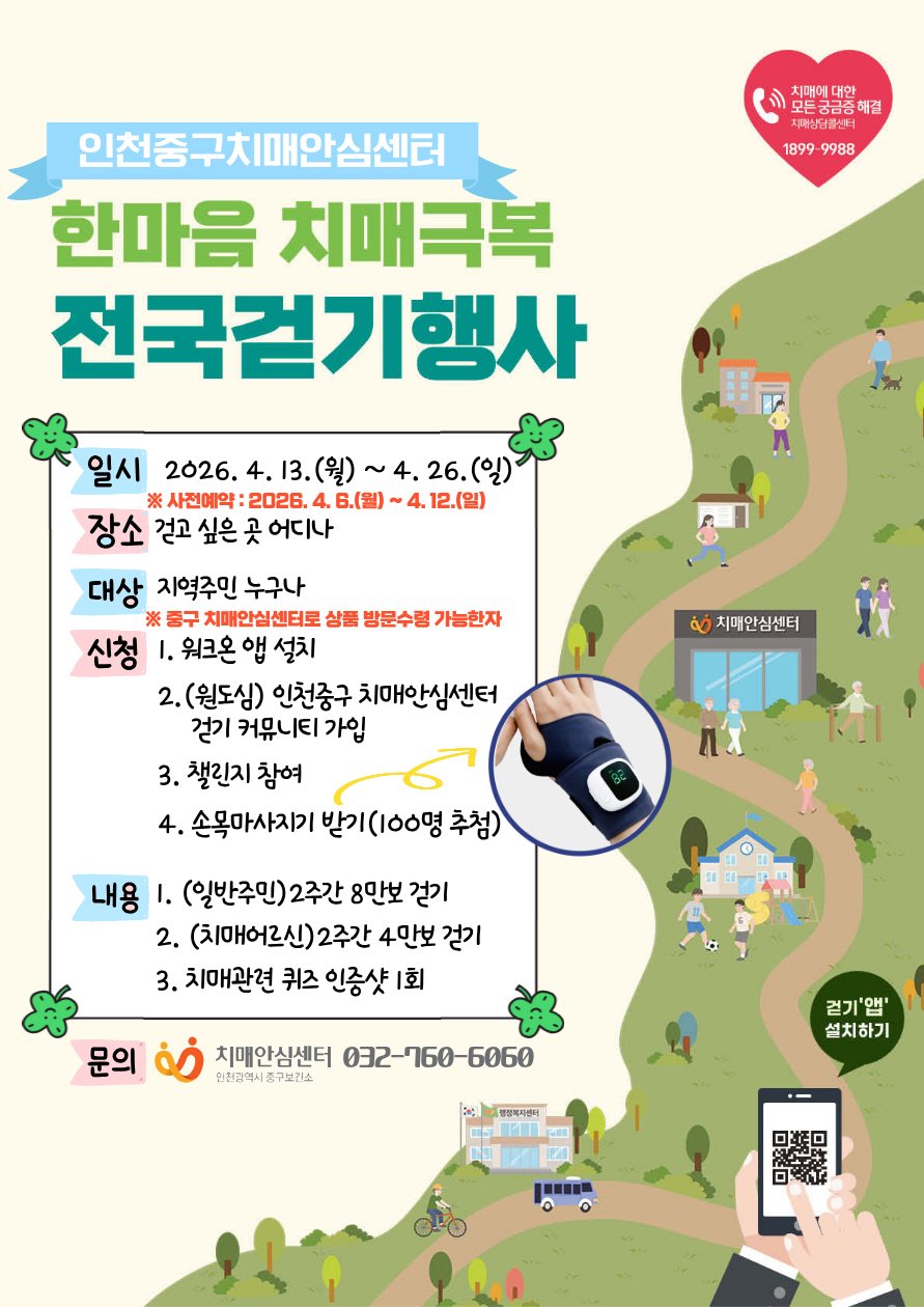 이번 행사는 치매에 대한 인식을 개선하고 주민 건강을 증진하기 위해 마련됐다. 중구보건소 치매안심센터가 주관하며, 모바일 앱을 이용해 걷기를 장려하고 치매 관련 정보를 제공한다.