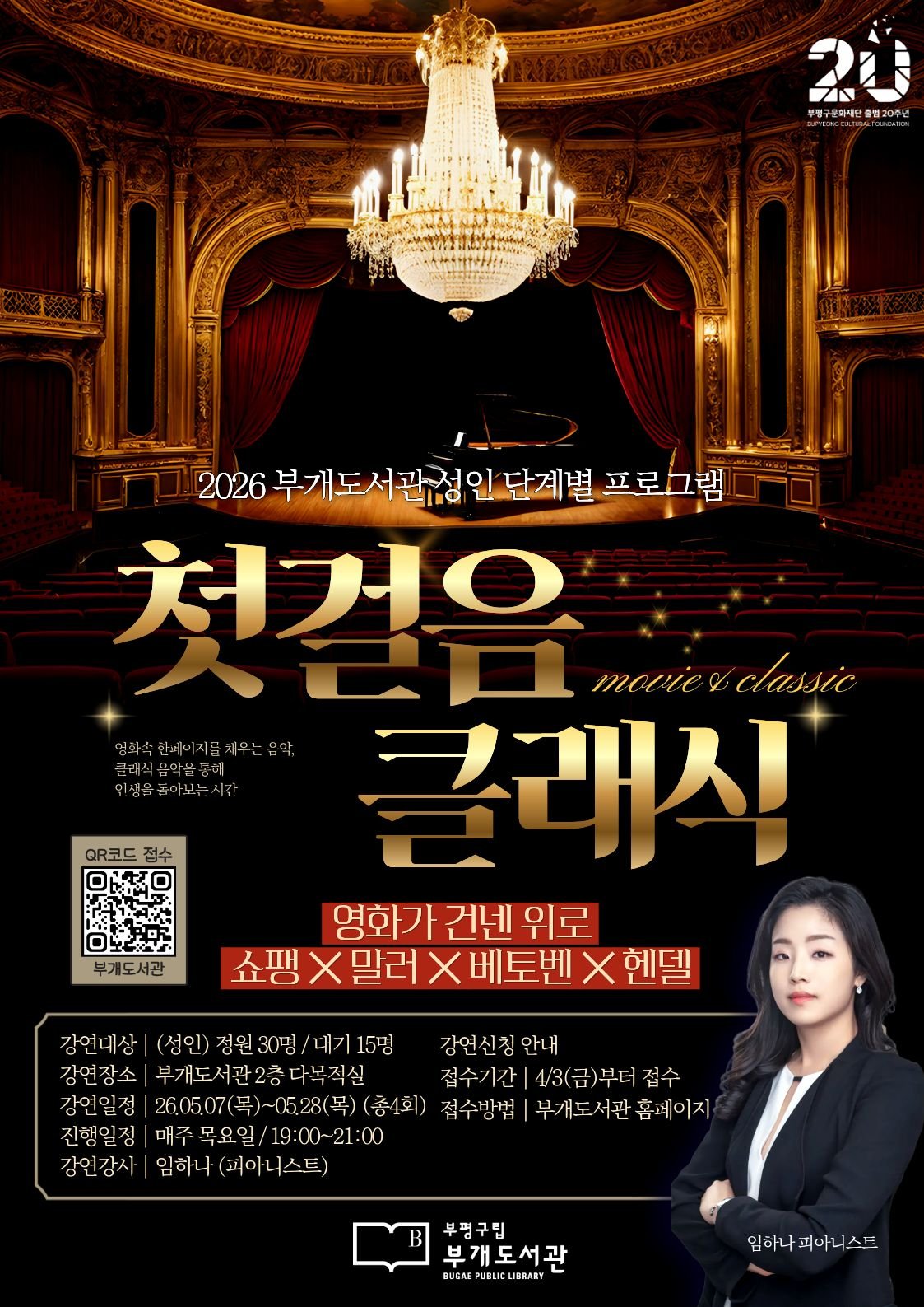 [PEDIEN] 부평구립 부개도서관이 5월, 영화와 클래식 음악을 결합한 특별한 인문학 프로그램 '첫걸음 클래식: 영화가 건넨 위로'를 운영한다.