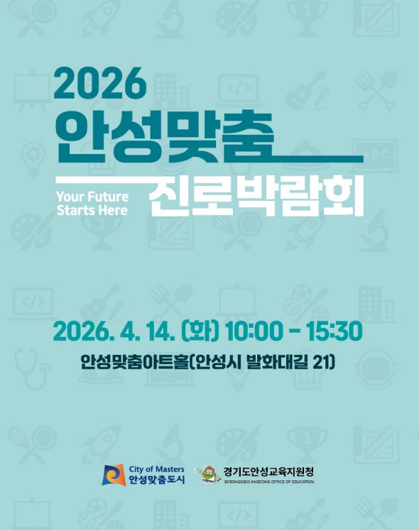 [PEDIEN] 안성시가 청소년들의 미래 설계를 돕기 위해 팔을 걷었다. 오는 4월 14일, 안성맞춤아트홀에서 '2026 안성맞춤 진로박람회'를 개최한다고 밝혔다.