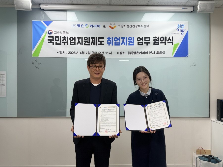 [PEDIEN] 고양특례시 정신건강복지센터가 지난 7일 ㈜명은커리어와 손을 맞잡았다. 고양 시민들의 취업 지원과 정신 건강 증진을 위한 협약이다.