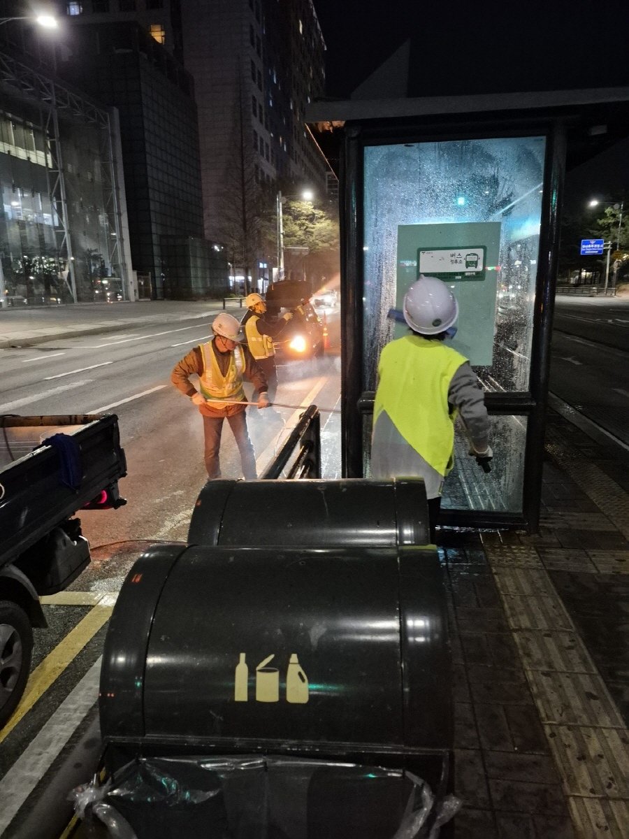이번 정비는 지난 7일부터 8일까지 진행됐다. 겨울철 묵은 때와 미세먼지로 뒤덮였던 버스정류장 지붕과 의자를 고압 세척기로 말끔하게 청소했다. 승강장 곳곳에 고착된 먼지와 오염물질 제거에도 힘썼다.