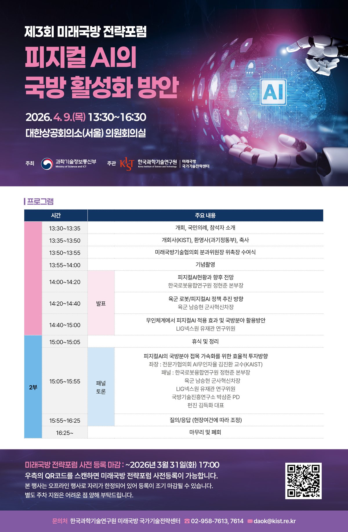 [PEDIEN] 과학기술정보통신부가 미래 국방의 핵심으로 떠오른 물리적 인공지능을 주제로 전략 토론회를 열었다. 4월 9일, 대한상공회의소에서 열린 토론회는 국방 분야에 AI 기술을 융합하기 위한 방안을 논의하기 위해 마련됐다.