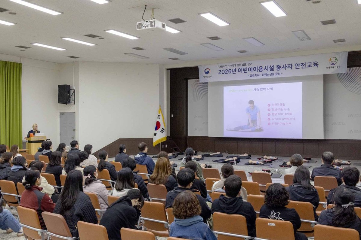 ‘어린이 안전관리에 관한 법률’에 따른 법정 의무교육으로, 13세 미만 어린이가 주로 이용하는 시설의 종사자는 매년 4시간 이상의 안전교육을 이수해야 한다.