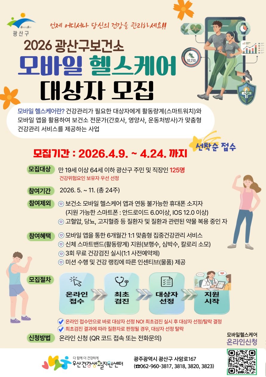 [PEDIEN] 광주 광산구는 정보통신기술을 활용해 주민들의 건강을 챙기는 ‘2026년 모바일 헬스케어’ 사업을 본격적으로 운영한다고 밝혔다.