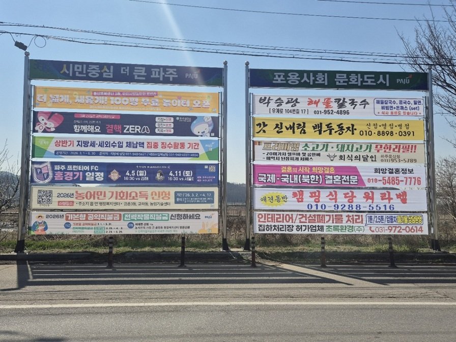 파주시는 현재 245기의 현수막 지정게시대를 운영하고 있다. 앞으로도 노후 시설을 연차적으로 교체해 안전하고 체계적인 관리 체계를 구축해 나갈 계획이다.