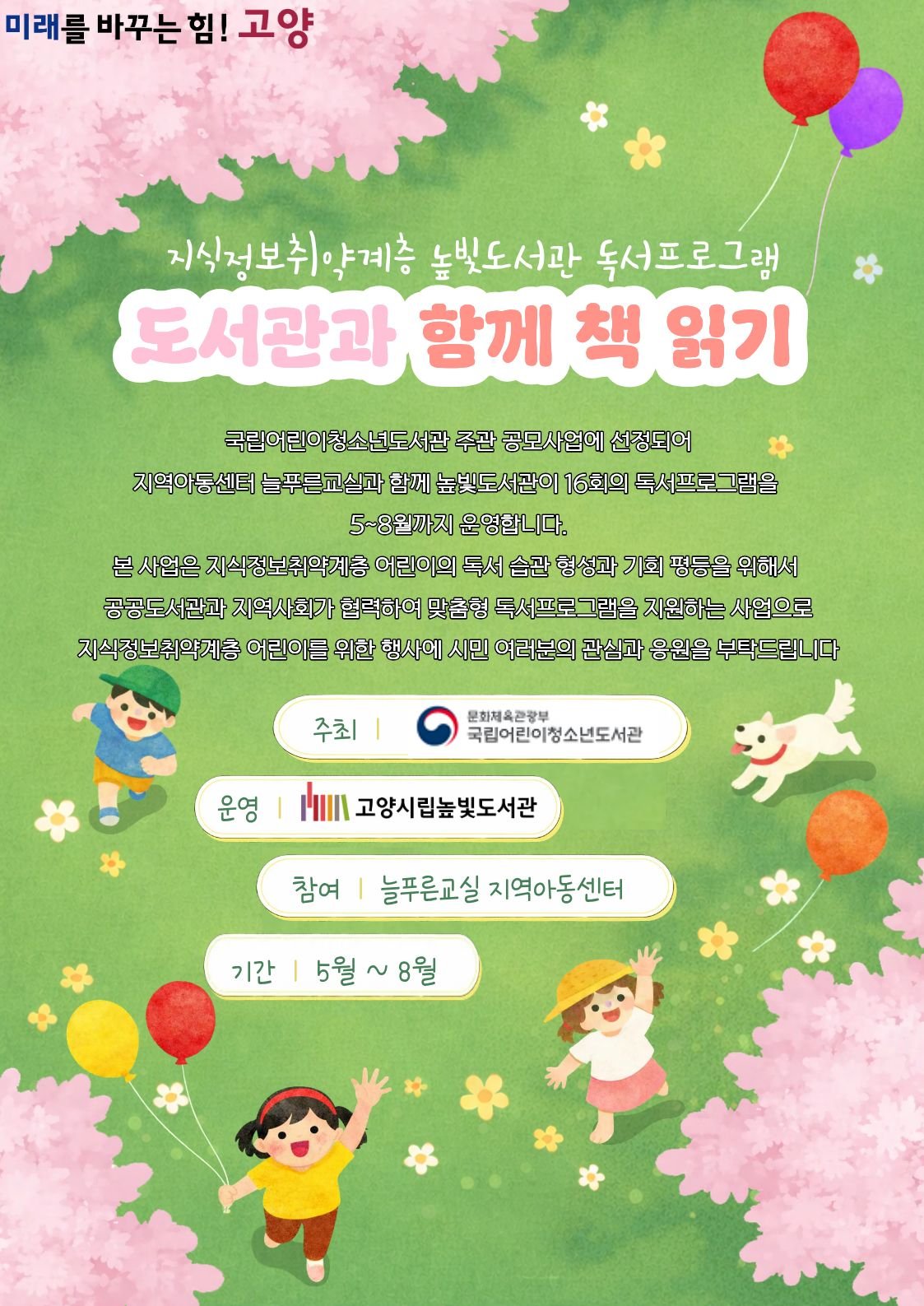 [PEDIEN] 고양시 높빛도서관이 5월부터 8월까지 늘푸른교실 지역아동센터와 손잡고 ‘2026년 도서관과 함께 책 읽기’ 프로그램을 운영한다.