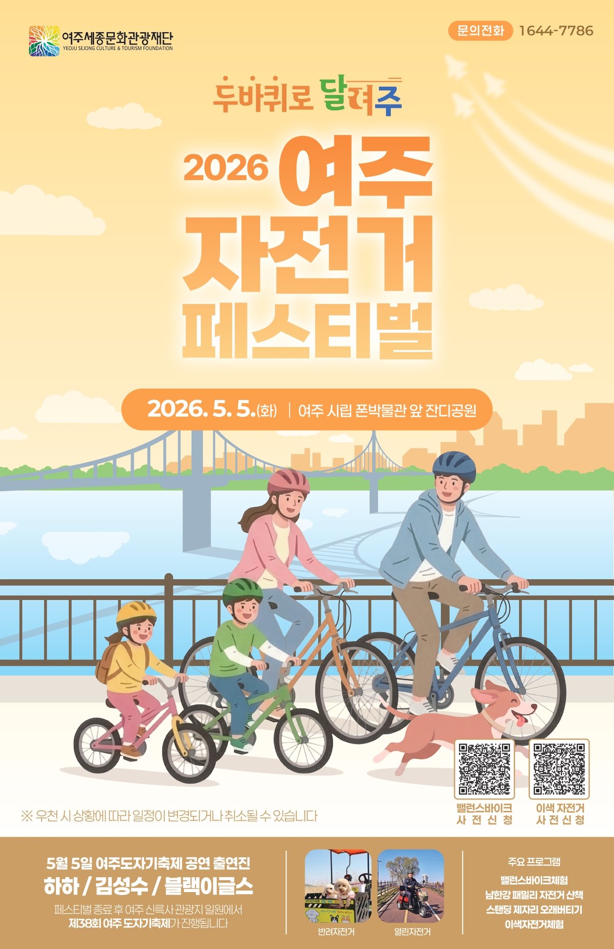 여주세종문화관광재단은 금은모래강변공원 폰박물관 앞에서 '2026 여주 자전거 페스티벌, 두 바퀴로 달~여주' 행사를 오전 10시부터 오후 2시까지 진행한다고 밝혔다. 이 행사는 특히 여주 도자기 축제와 연계하여 더욱 풍성한 즐거움을 선사할 예정이다.