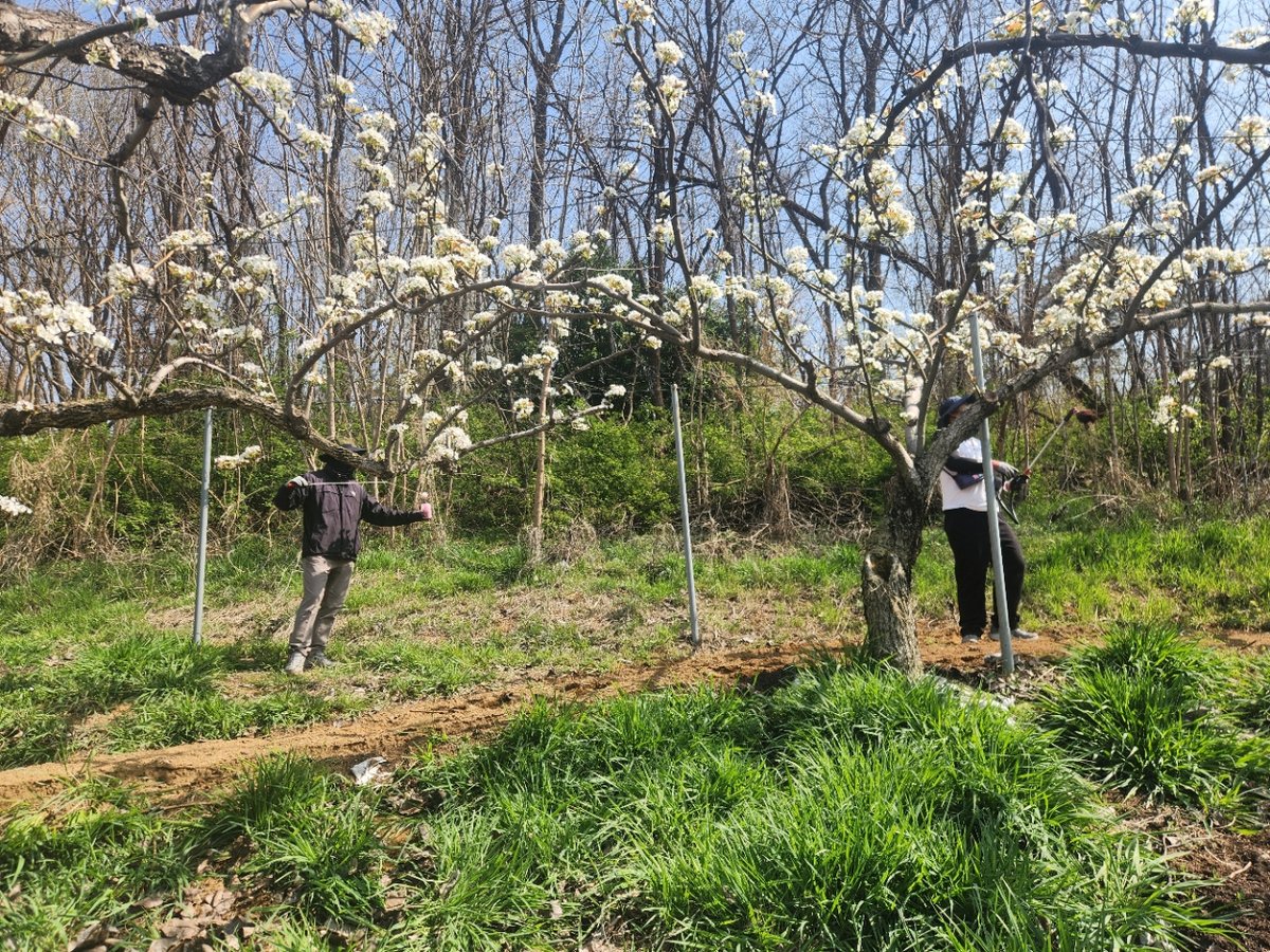 인공수분은 배 결실률을 높이는 데 매우 중요한 작업이다. 적기를 놓치면 품질 저하로 이어질 수 있다.