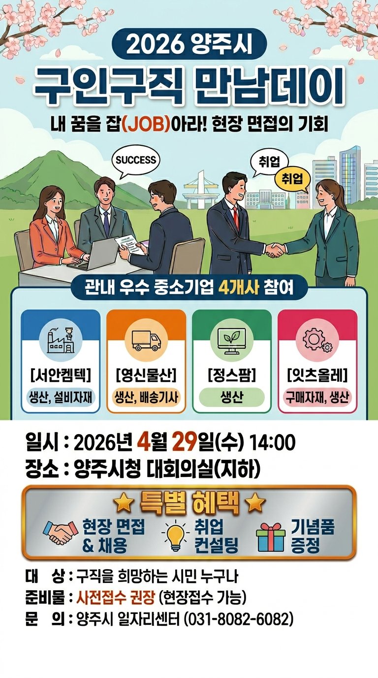 양주시 관계자는 “이번 ‘구인·구직 만남데이’를 통해 구직자와 구인기업 간의 직접적인 매칭 기회를 확대하고, 현장 중심의 채용 지원을 더욱 강화해 나갈 것”이라고 밝혔다.