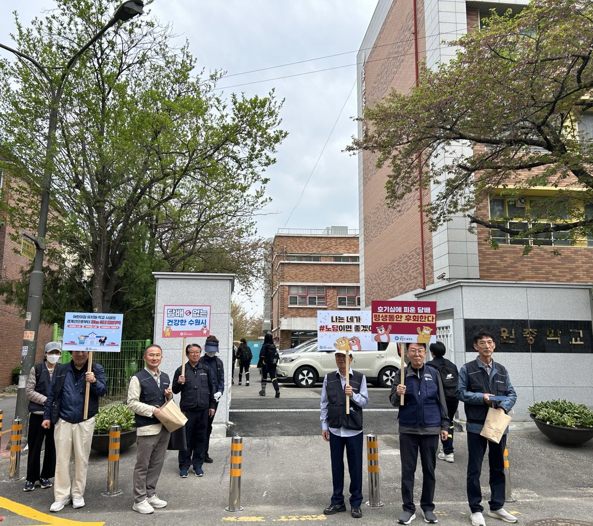 장안구보건소 직원들은 근로복지공단수원어린이집, 송정초·중학교, 송죽초등학교 주변을 돌며 금연구역임을 알렸다. 어린이집·유치원·학교 경계로부터 30m 이내는 금연구역이다.