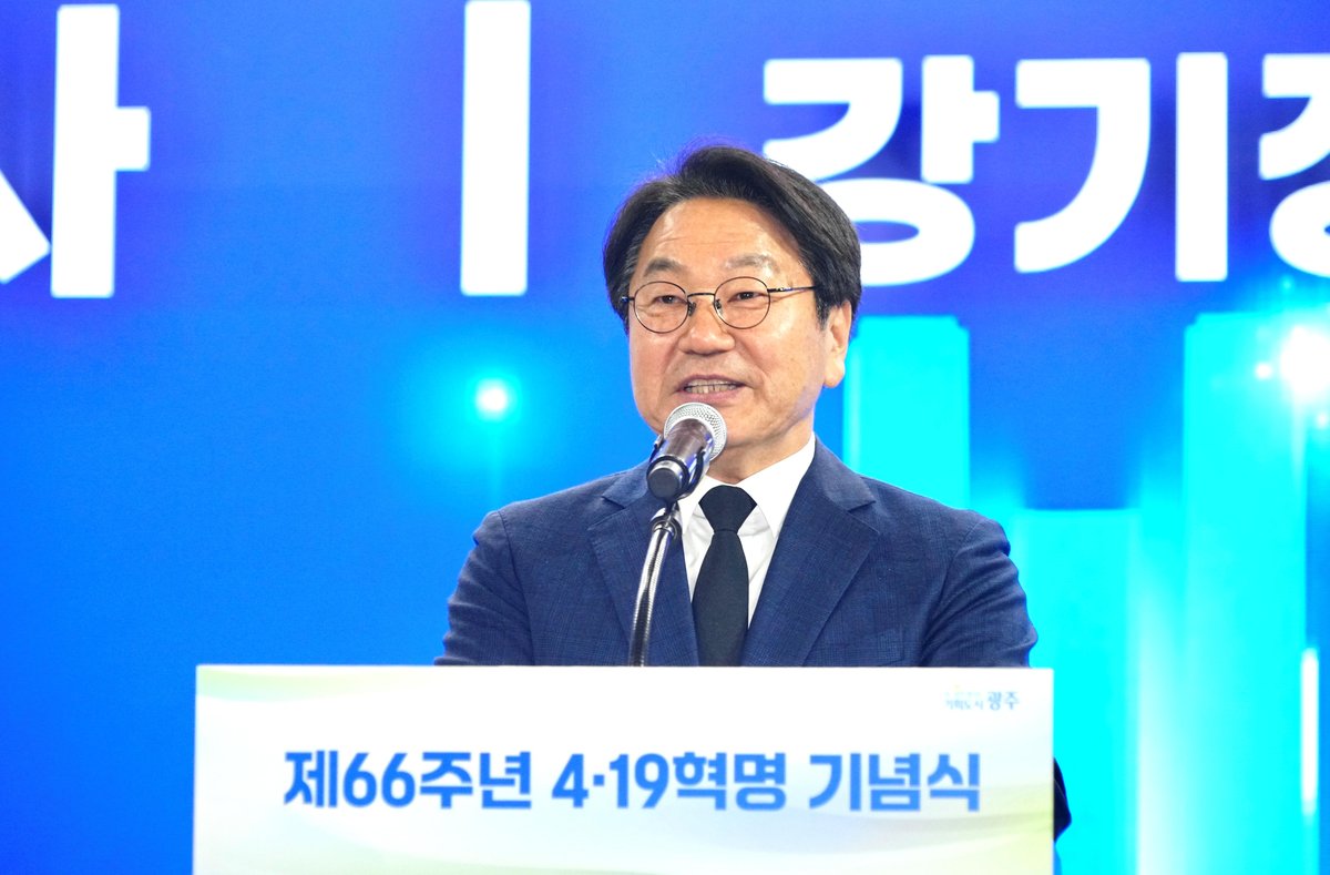 [PEDIEN] 강기정 광주시장이 4·19혁명 66주년 기념식에서 5·18민주화운동 정신을 헌법 전문에 담겠다는 의지를 강조했다.