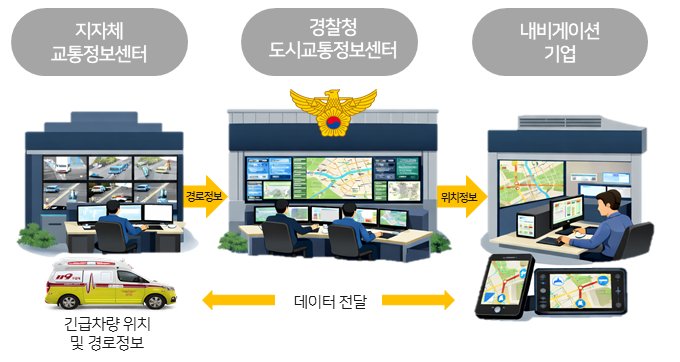 [PEDIEN] 경찰청은 한국도로교통공단, 경남소방본부, 대전시, 카카오모빌리티와 긴급자동차의 위치 및 경로 정보와 우선 신호정보를 길도우미에 제공하는 ‘긴급자동차 접근 정보 안내 서비스’를 개시한다.