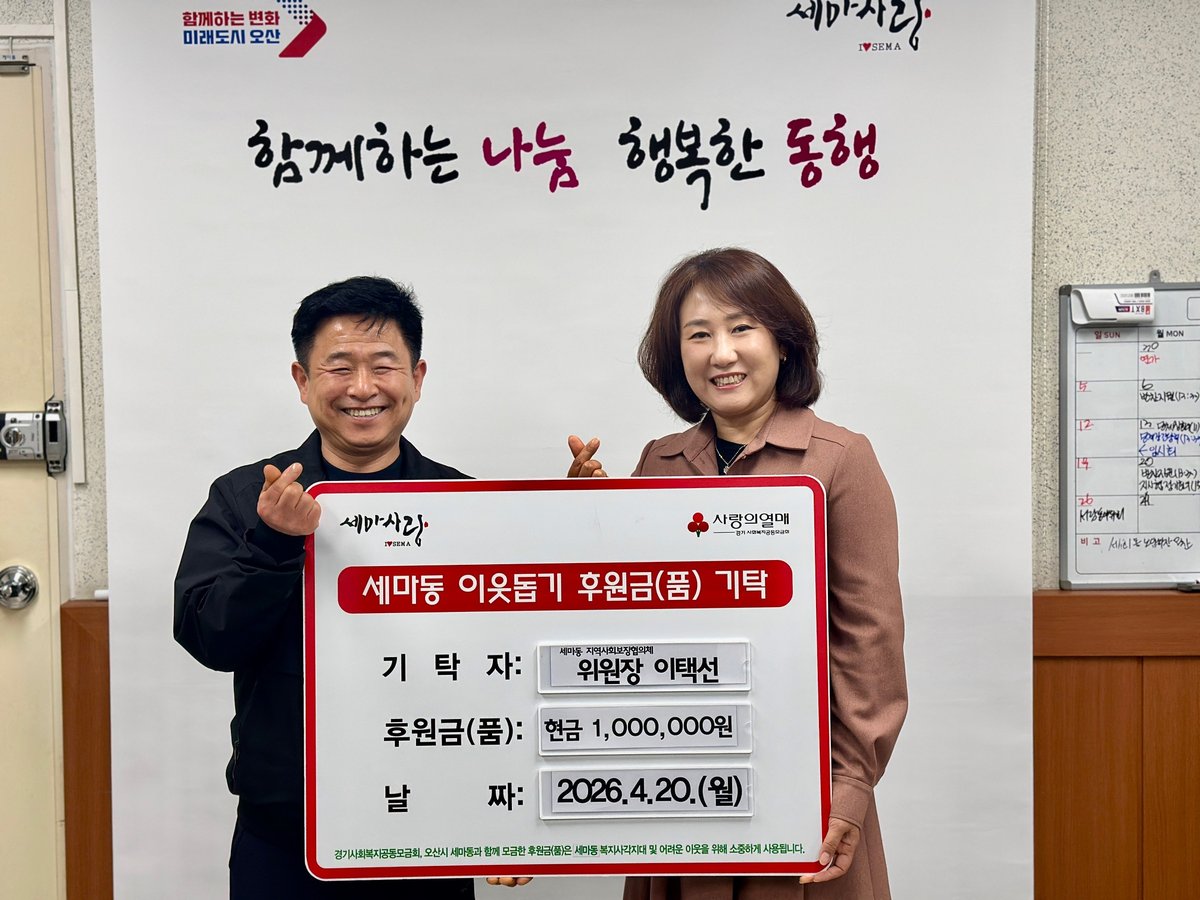 유미정 세마동장은 “매년 잊지 않고 따뜻한 나눔을 실천해주시는 이택선 위원장님께 깊이 감사드린다”고 전했다. 이어 “기탁해주신 성금은 도움이 필요한 이웃들에게 소중히 전달하겠다”고 덧붙였다.