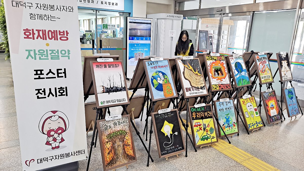 대덕구자원봉사센터는 21일 대덕구청에서 '화재 예방 및 자원 절약 포스터 그리기' 자원봉사활동 결과물 전시회를 시작했다. 이번 전시는 5월 6일까지 2주간 진행된다.
