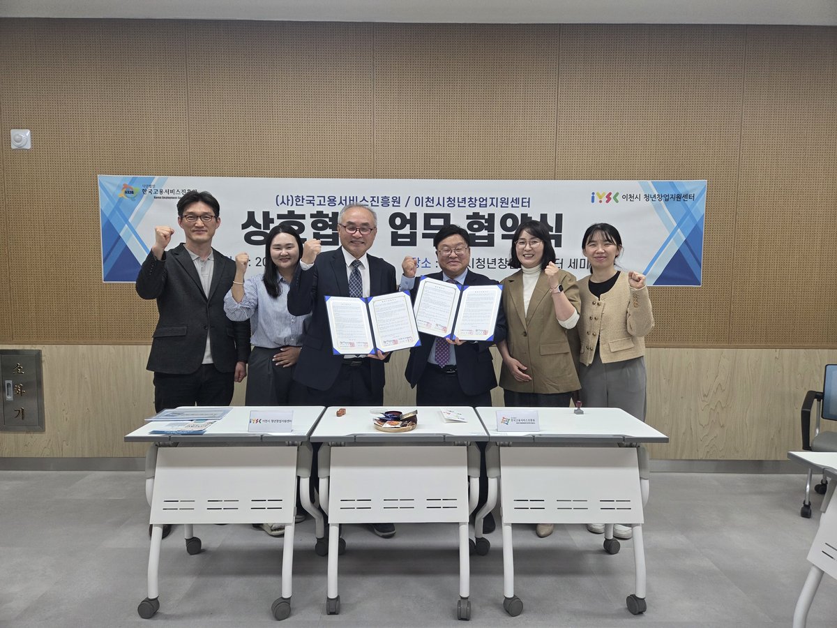 이천시 청년창업지원센터는 지난 4월 15일 한국고용서비스진흥원과 업무 협약을 맺고 청년 지원을 강화하기로 했다고 밝혔다. 협약식은 센터 세미나실에서 진행됐다.