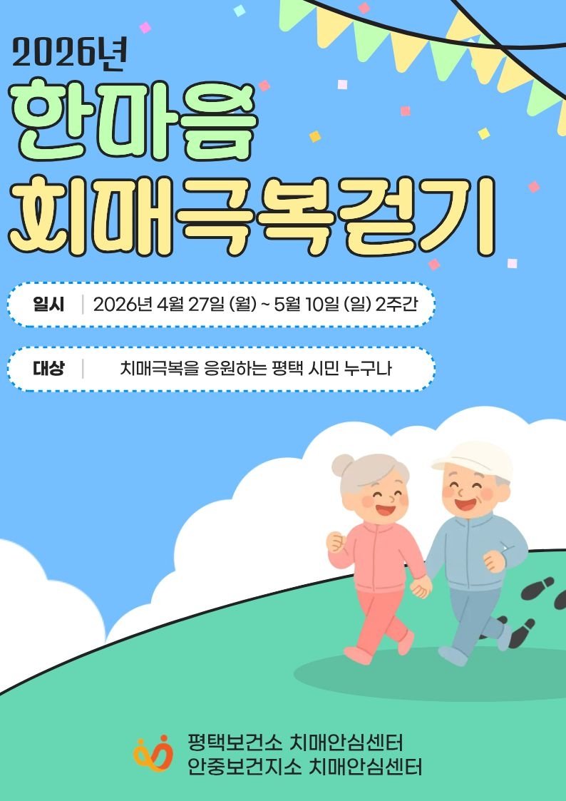 [PEDIEN] 평택시가 치매 예방과 인식 개선을 위한 '2026년 한마음 치매극복 걷기 행사'를 4월 27일부터 5월 10일까지 2주간 진행한다.
