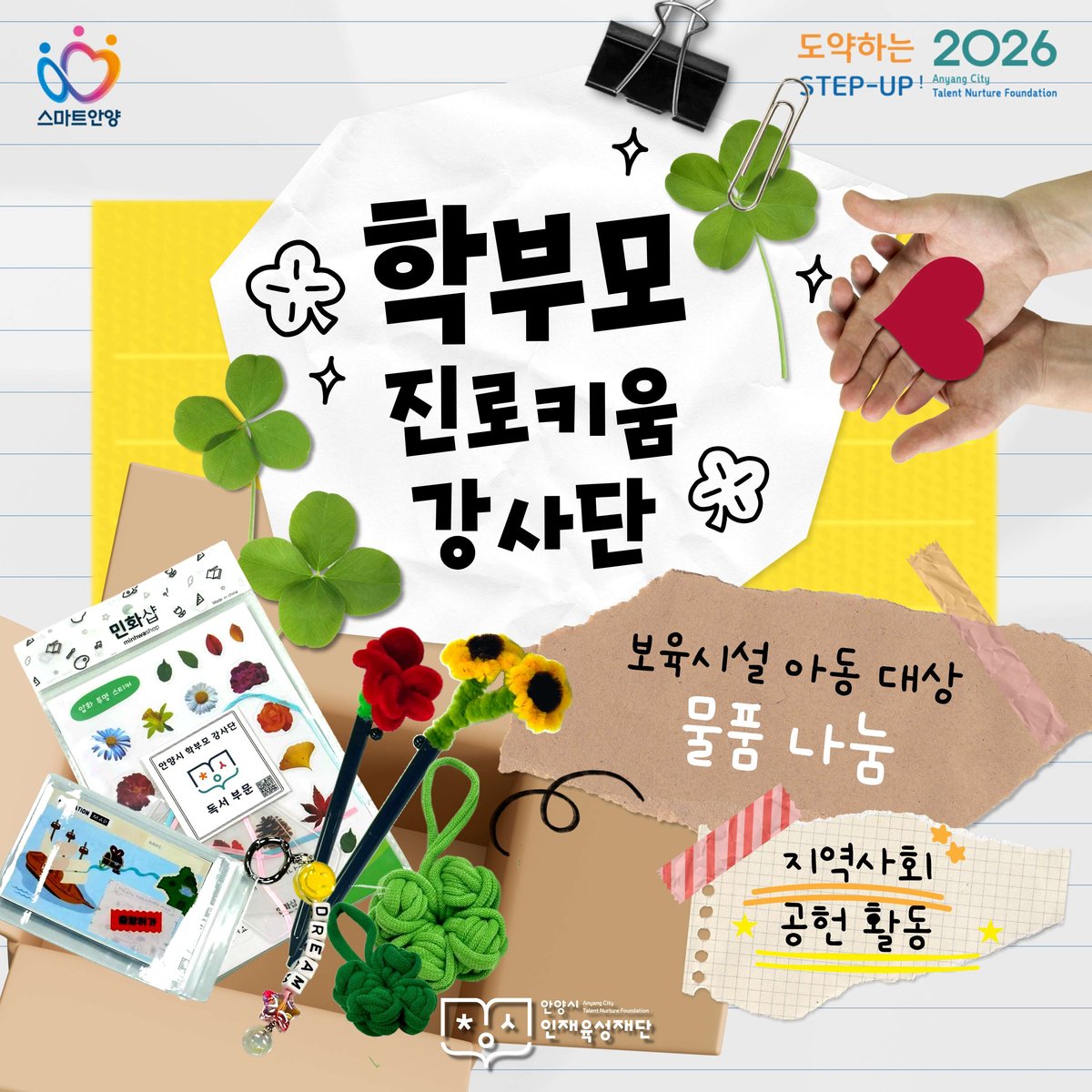 [PEDIEN] 안양시 인재육성재단의 ‘학부모 진로키움 강사단’ 이 지역사회 공헌 활동의 일환으로 관내 ‘좋은집 보육원’에 아동들을 위한 체험형 교구를 기부하며 따뜻한 나눔을 실천했다.
