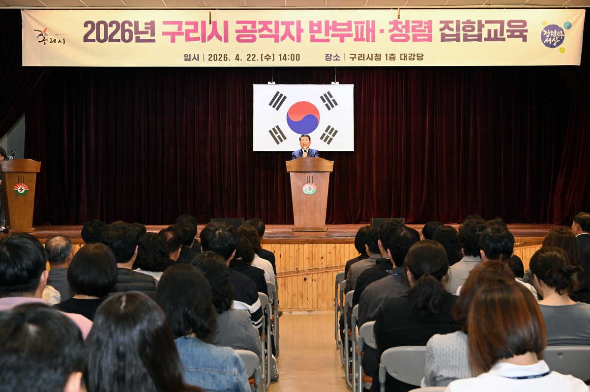 [PEDIEN] 구리시가 지난 4월 22일, 시청 대강당에서 5급 이상 간부 공무원과 신규·승진 공무원 170여 명을 대상으로 '2026년 구리시 공직자 반부패·청렴 교육'을 진행했다.