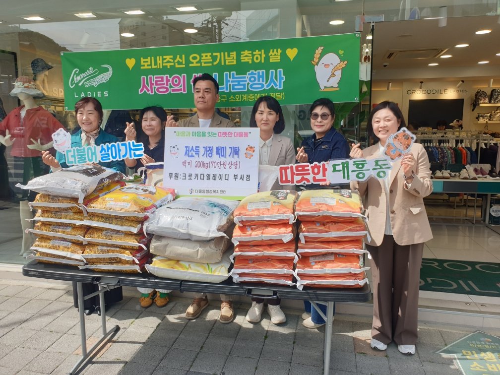 민순희 대흥동장은 "개업이라는 뜻깊은 순간을 지역사회 나눔으로 이어주신 임향희 대표께 깊이 감사드린다"고 전했다. 기탁받은 백미는 돌봄 사각지대 이웃들에게 소중히 전달할 계획이다. 지역 상인의 꾸준한 나눔 활동이 어려운 이웃들에게 큰 힘이 될 것으로 기대된다.