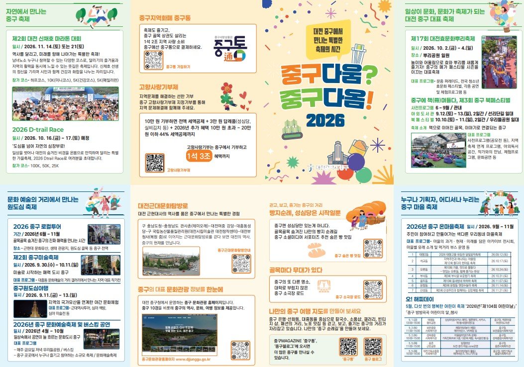 [PEDIEN] 대전 중구가 2026년 한 해 동안 열리는 10개 축제를 하나의 브랜드로 묶어 통합 홍보에 나선다.