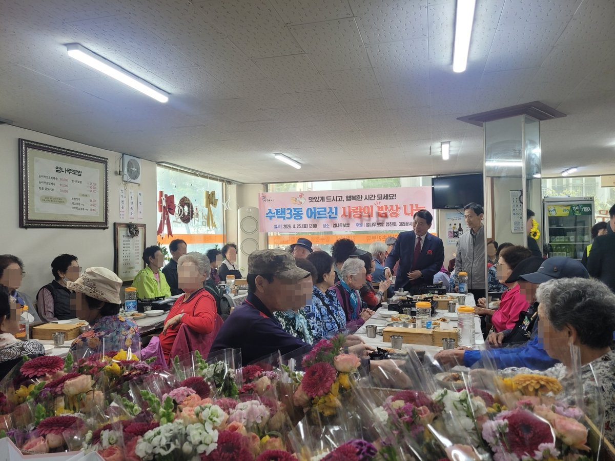 [PEDIEN] 구리시 수택3동에서 지역 상인과 단체들이 힘을 모아 독거어르신들에게 따뜻한 식사를 대접하는 뜻깊은 행사가 열렸다. 엄나무보쌈이 정성껏 마련한 '사랑의 밥상'으로 어르신들의 건강과 안부를 살폈다.