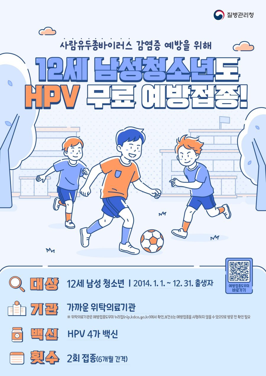 기존 HPV 국가예방접종은 12~17세 여성 청소년과 18~26세 저소득층 여성을 주된 대상으로 했다. 이번 확대에 따라 2011년 1월 1일 이후 출생한 12세 남아도 무료 접종 혜택을 받게 된다.