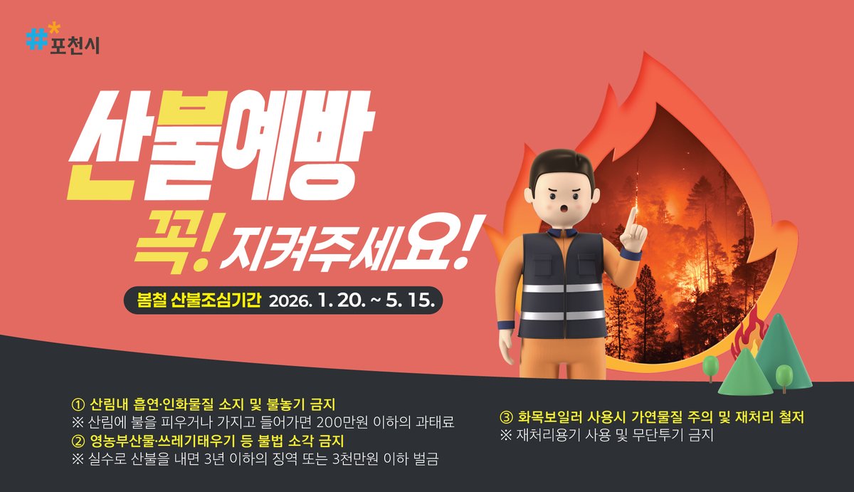포천시는 시민들에게 영농부산물 및 쓰레기 불법 소각 금지를 당부했다. 산행 시 라이터나 버너 등 화기 소지 및 흡연 금지, 입산통제구역과 등산로 폐쇄 구간 출입 금지 등 기본적인 산불 예방 수칙 준수를 강조했다.