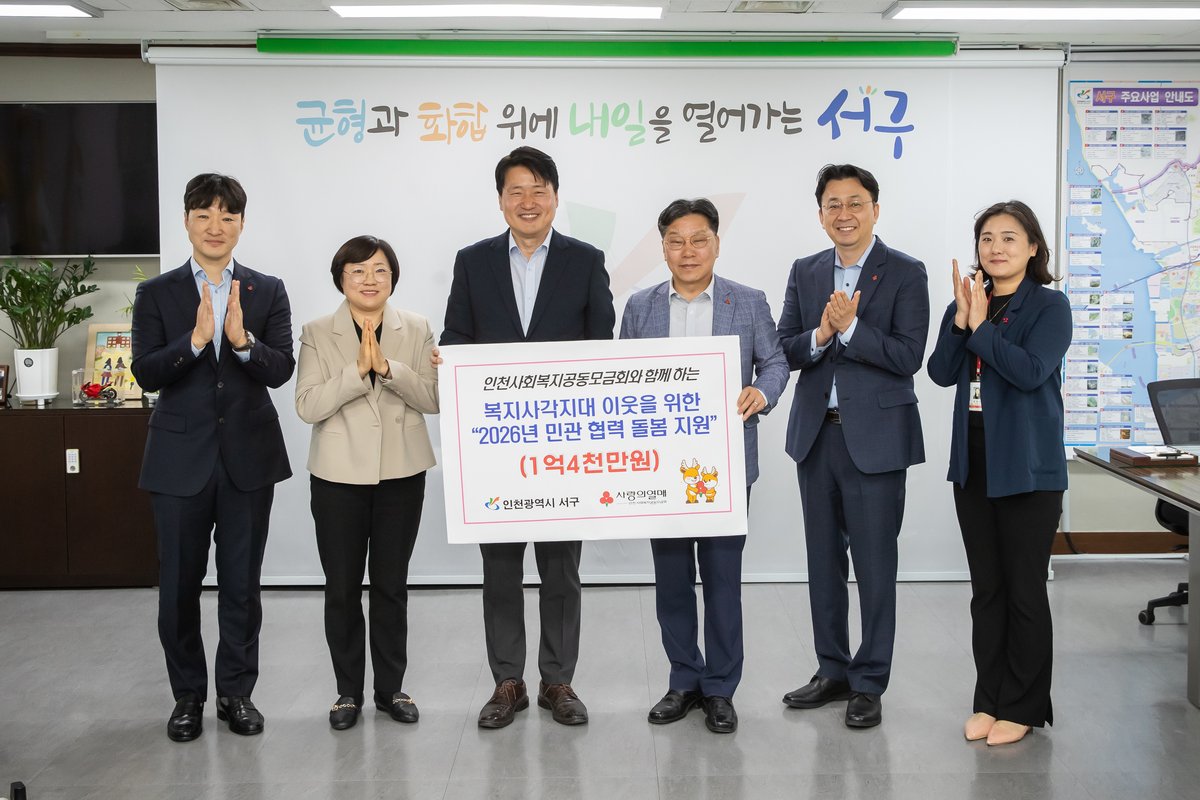 [PEDIEN] 인천 서구가 지역 내 복지 사각지대 해소를 위해 인천사회복지공동모금회와 손잡고 '2026년 민관협력 돌봄 지원' 전달식을 최근 진행했다. 이번 지원은 한부모 가정, 가족돌봄청년, 미혼모 가구 등 기준 중위소득 120% 이내의 취약계층에 실질적인 도움을 제공할 예정이다.