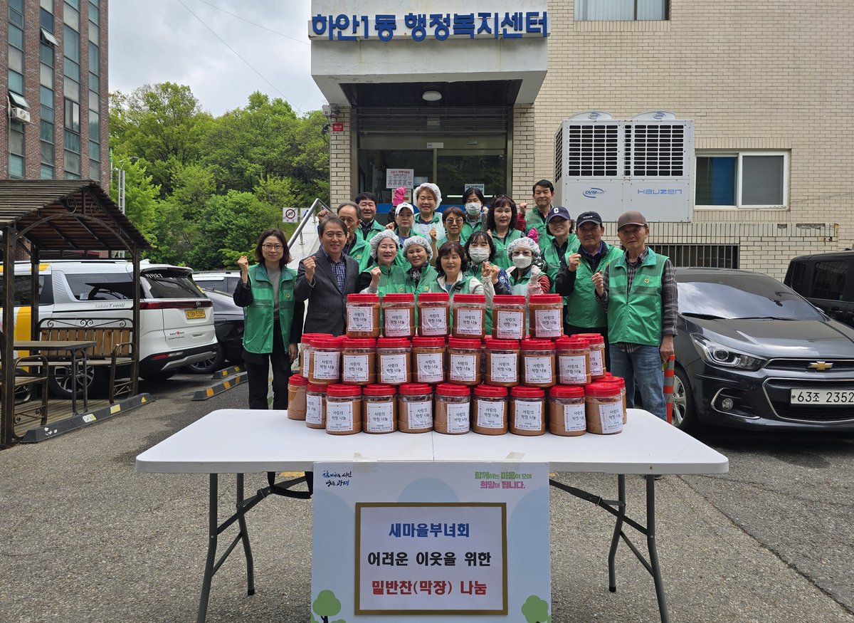 [PEDIEN] 광명시 하안1동 새마을부녀회와 지도자협의회가 지역 내 어려운 이웃들을 위해 직접 담근 막장을 나누며 따뜻한 온정을 전했다. 이들 단체는 지난 28일 '사랑의 막장 담그기' 행사를 열어 홀몸 어르신과 저소득 가구 등 50여 곳에 구수한 막장을 전달하고 안부를 살폈다.