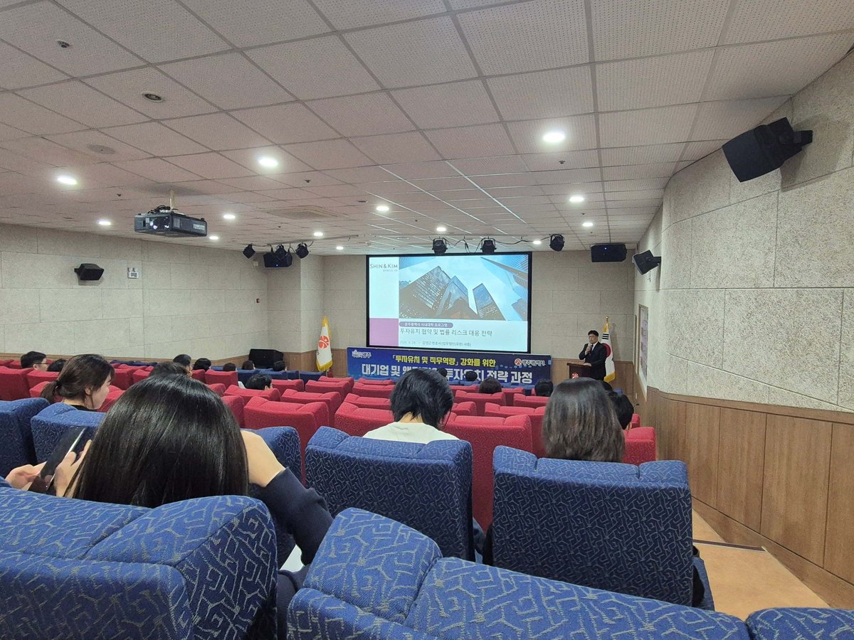 이날 무등홀에서 열린 첫 강의는 법무법인 세종 김영근 변호사가 맡아 '투자유치 협약 및 법률 리스크 대응 전략'을 주제로 진행됐다. 김 변호사는 투자유치 과정에서 발생할 수 있는 법률적 위험 요소를 중심으로 실제 사례들을 설명했다.
