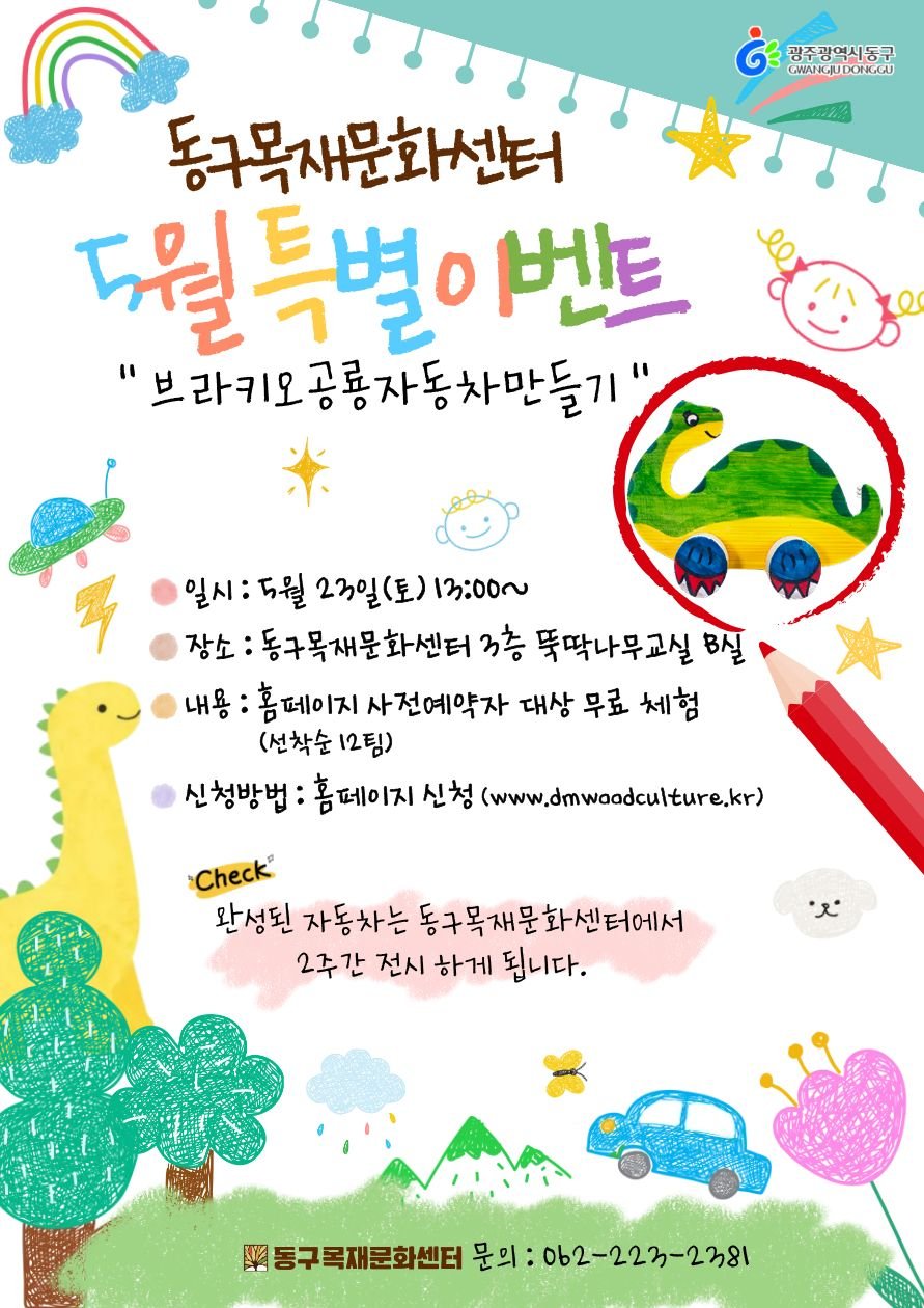 우선 5월 1일부터 홈페이지 사전 예약 방문객 100명에게 어린이 음료를 증정하는 행사를 시작한다. 이어 5월 23일에는 가족이 함께 참여하는 '공룡 자동차 만들기 체험 프로그램'이 눈길을 끈다.