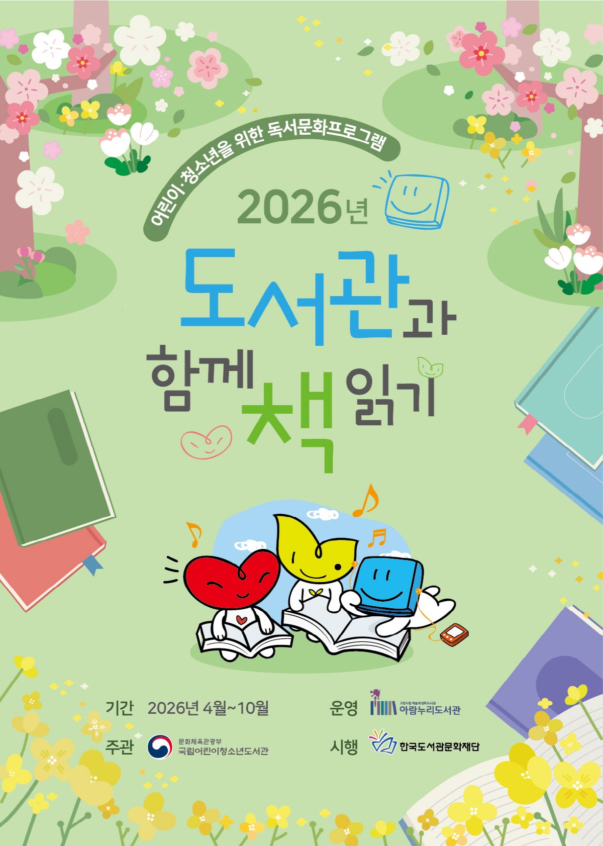 [PEDIEN] 고양특례시 아람누리도서관이 국립어린이청소년도서관이 주최·주관하는 ‘2026년 도서관과 함께 책 읽기’ 공모사업에 최종 선정됐다. 이번 선정으로 아람누리도서관은 지역 내 지식정보취약계층 청소년들에게 독서 문화를 향유하고 미래를 탐색할 수 있는 기회를 제공한다.