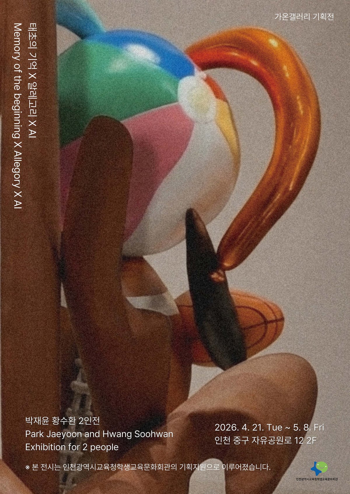 인천광역시교육청학생교육문화회관이 특별한 기획전을 연다. 4월 21일부터 5월 8일까지 가온갤러리에서 '태초의 기억 × 알레고리 × AI' 전시가 개최된다.이번 전시는 박재윤, 황수환 두 작가가 참여하...