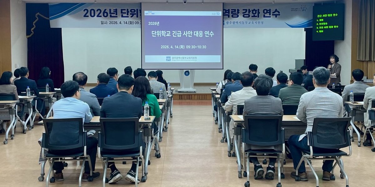광주광역시동부교육지원청이 학교 내 위기 상황 발생 시 신속한 대처를 돕기 위해 ‘학교 위기관리 대응 연수’를 14일 개최했다.이번 연수는 학교 관리자들의 초기 대응 능력을 강화하고, 학생과 교직원을 보호하...