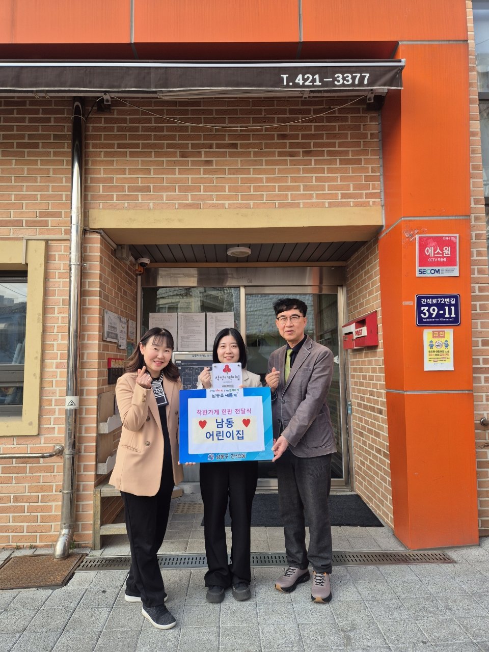 인천 남동구 간석3동에 따뜻한 나눔의 손길이 이어지고 있다. 간석3동 행정복지센터는 최근 지역 내 '착한 가게'로 새롭게 동참한 남동어린이집과 전주식당에 현판을 전달했다고 밝혔다.'착한 가게'는 매월 3만원 이상을 꾸준히 기부하며 소외된 이웃을 돕는 가게를 말한다. 인천사회복지공동모금회는 이들 가게에 '착한 가게' 현판을 지원, 나눔 문화 확산에 힘을 보탠다.이번에 '착한 가게'에 참여한 남동어린이집과 전주식당은 작은 정성이지만 어려운 이웃에게 힘이 되길 바란다는 뜻을 전했다. 앞으로도 지역사회와 함께하는 노력을 이어갈 것을 약속했다.한영숙 간석3동장은 이웃사랑을 실천해준 데 감사를 표하며, 앞으로도 기부 문화 확산을 위해 노력하겠다고 밝혔다. 기부된 금액은 간석3동의 저소득 취약계층을 위한 복지사업에 사용될 예정이다.간석3동은 이번 착한 가게 동참을 계기로 지역사회 나눔 문화가 더욱 확산될 것으로 기대하고 있다. 지역 주민들의 따뜻한 마음이 모여 더욱 살기 좋은 동네를 만들어갈 전망이다.