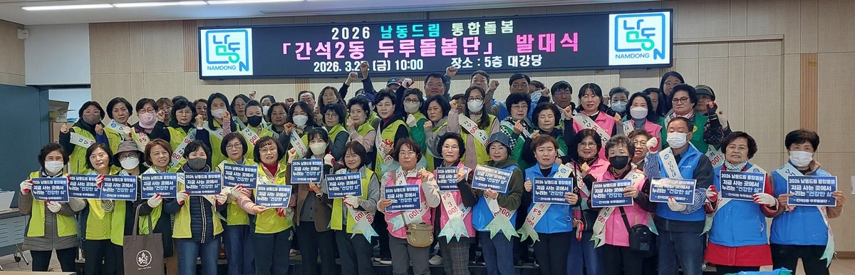 인천시 남동구 간석2동 행정복지센터는 돌봄통합지원법 시행에 맞춰 ‘동 특화 통합돌봄서비스 추진계획’을 수립하고 지역사회 돌봄 연계를 위한 ‘간석2동 두루돌봄단’을 공식 출범시켰다고 30일 밝혔다.간석2동은‘지금 사는 곳에서 누리는 건강한 삶’ 이라는 핵심 모토 아래, 두 가지 대표 특화 서비스를 추진한다.먼저, ‘집으로 온 봄봄드림 서비스’는 복지담당 공무원과 두루돌봄단원들이 직접 가정을 방문해 생활환경 개선, 정서적 지지, 생활편의 지원 등을 제공하는 맞춤형 재가 서비스로 대상자의 욕구를 사전에 파악해 생활편의 정서 지원 물품을 직접 지원한다.또한, '집으로 온 영양드림 서비스'는 영양 불균형 위험에 노출된 취약계층에게 균형 잡힌 영양 지원을 통해 건강한 재가 생활을 유지하도록 돕는다.두 서비스는 신체 건강 정서 안정 영양 관리가 유기적으로 연결되는 통합 돌봄 체계로 운영된다.이번에 출범한 ‘간석2동 두루돌봄단’은 지역사회 돌봄 인프라 강화를 위한 민 관 협력조직으로 발대식에는 지역사회보장협의체 위원, 복지통장 등 돌봄 활동가 70여명이 참석했다.앞으로 두루돌봄단 단원들은 정기 가정방문을 통해 생활실태와 심리상태를 점검하고 전문 돌봄서비스 연계 창구 역할을 수행하며 사회적 고립 위험 취약가구를 조기 발굴해 복지 안전망을 강화할 것으로 기대된다.박형식 동장은 "의료 요양 중심의 돌봄 구조에서 벗어나 생활환경과 정서 안정을 함께 챙기는 돌봄 체계를 만들고 대상자별 욕구를 세심히 반영해 재가 생활의 자립성과 삶의 질을 높이겠다"라고 밝혔다.간석2동은 두루돌봄단의 정기 활동과 특화 서비스를 유기적으로 연계해 고립 취약가구 조기 발굴과 지역사회 자원 연계를 강화하고 주민이 지금 사는 곳에서 안전하고 건강한 삶을 이어갈 수 있는 환경을 조성해 나갈 방침이다. -