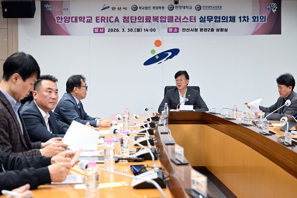 안산시가 한양대학교 ERICA 캠퍼스 내 첨단의료복합클러스터 조성을 위한 후속 이행에 본격적으로 착수했다. 30일, 안산시청 상황실에서는 ‘한양대학교 ERICA 첨단의료복합클러스터 실무협의체’의 첫 킥오프 회의가 열렸다.시는 지난 1월 학교법인 한양학원, 한양대학교, 한양대의료원과 업무협약을 체결하며 사업의 기반을 다졌다. 2월에는 관계기관이 참여하는 실무협의체를 구성, 클러스터 조성에 박차를 가하고 있다.이번 킥오프 회의에서는 첨단의료복합클러스터 조성을 위한 실무 논의가 본격적으로 진행됐다. 실무협의체 회원들은 그간의 추진 경과를 공유하고, 향후 협의체 운영 방향과 협력체계 구축 방안에 대해 심도 있는 의견을 나눴다.특히 이번 사업이 단순한 병원 유치를 넘어 캠퍼스혁신파크 및 경제자유구역과 연계, 경기 서남부권 의료 공백 해소와 미래 의료산업 기반 확충을 이끌 핵심 사업이라는 점이 강조됐다. 이를 통해 지역 경제 활성화에도 크게 기여할 것으로 전망된다.이민근 안산시장은 “첨단의료복합클러스터가 조성되면 미래 안산의 모습은 크게 달라질 것”이라고 강조했다. 사업의 성공적인 추진을 위해 경기도와 중앙정부와의 협력을 강화해 나갈 계획이라고 밝혔다. -