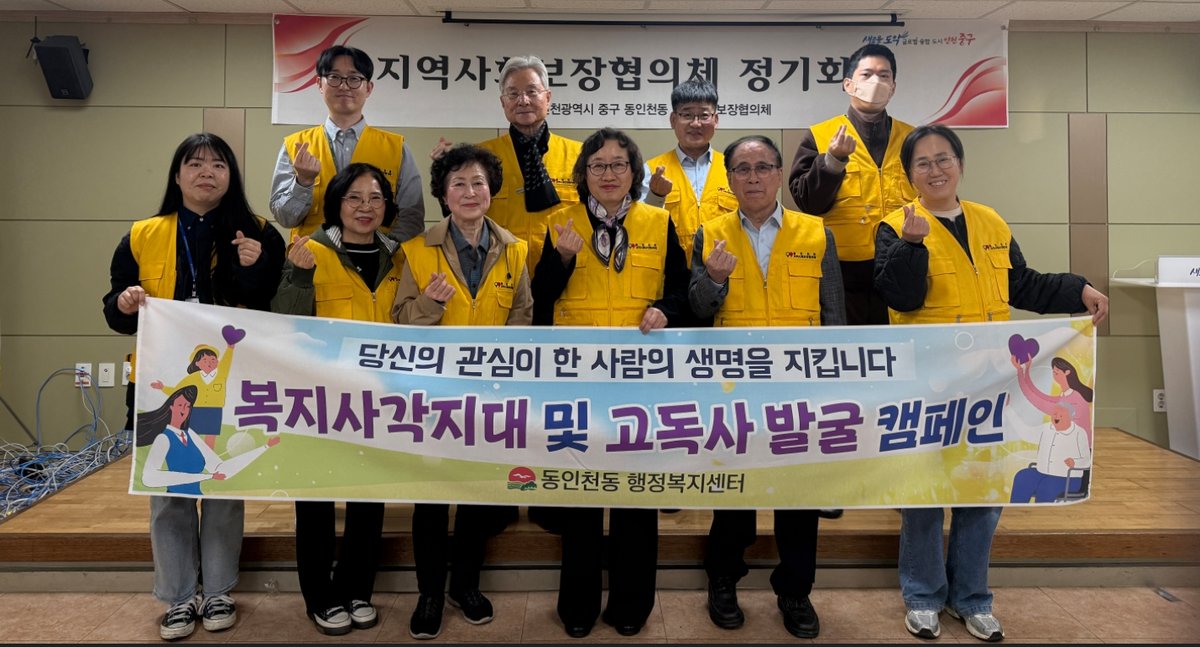 인천 중구 동인천동에서 복지사각지대 해소와 고독사 예방을 위한 캠페인이 펼쳐졌다. 지역사회보장협의체가 주축이 되어 지난 13일 캠페인을 진행, 위기가구 조기 발굴과 취약계층 보호에 나섰다.이번 캠페인은 ...