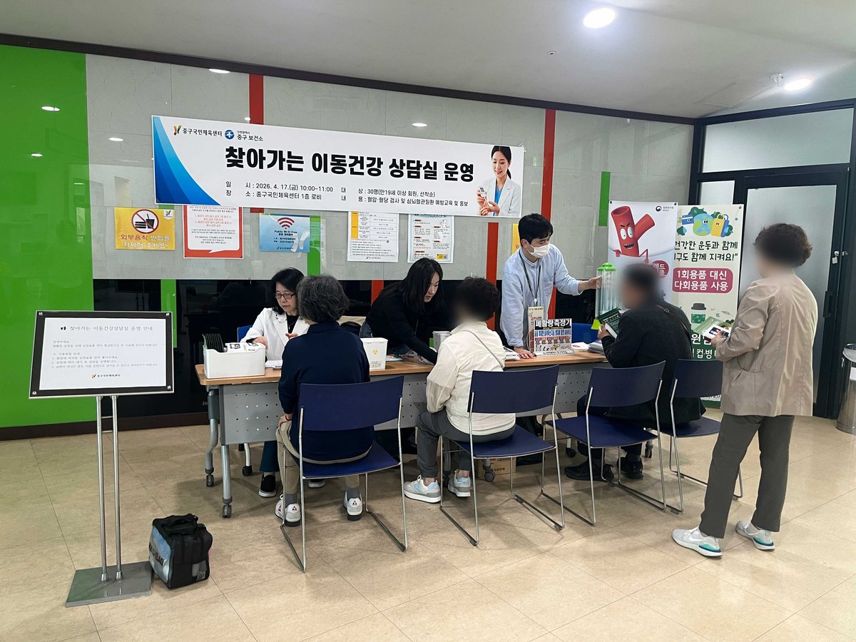 인천중구시설관리공단은 지난 17일 중구국민체육센터에서 지역 주민을 위한 ‘찾아가는 이동건강상담실’을 운영했다.주민들이 생활 속에서 쉽게 건강을 관리할 수 있도록 마련된 이번 상담실은, 혈압과 혈당 측정...